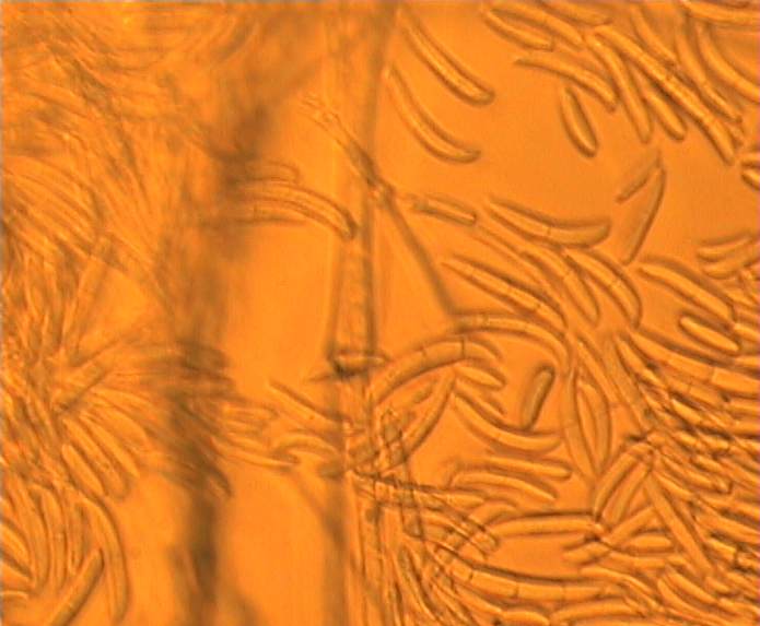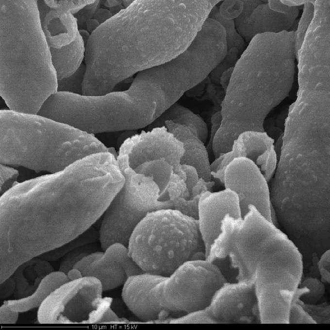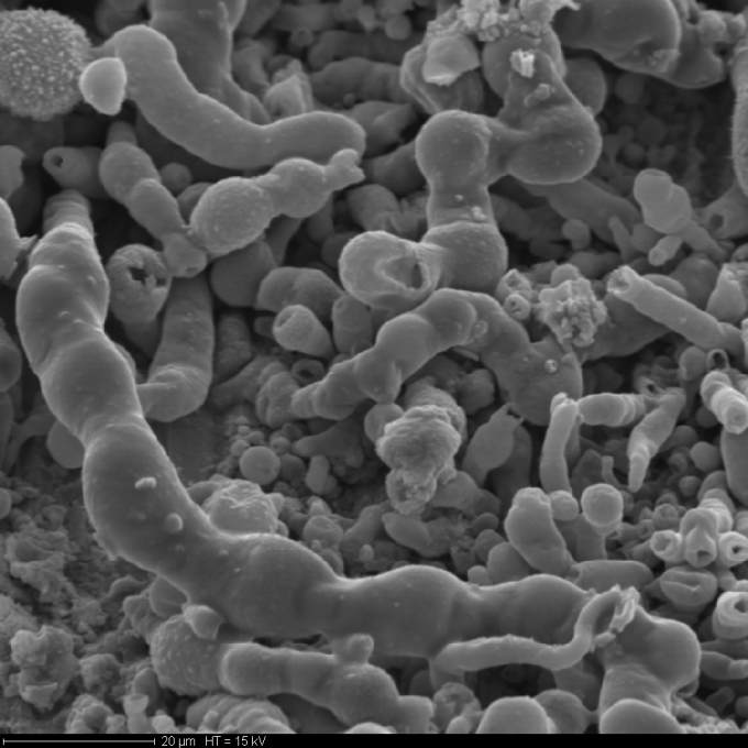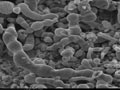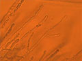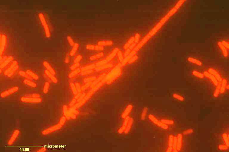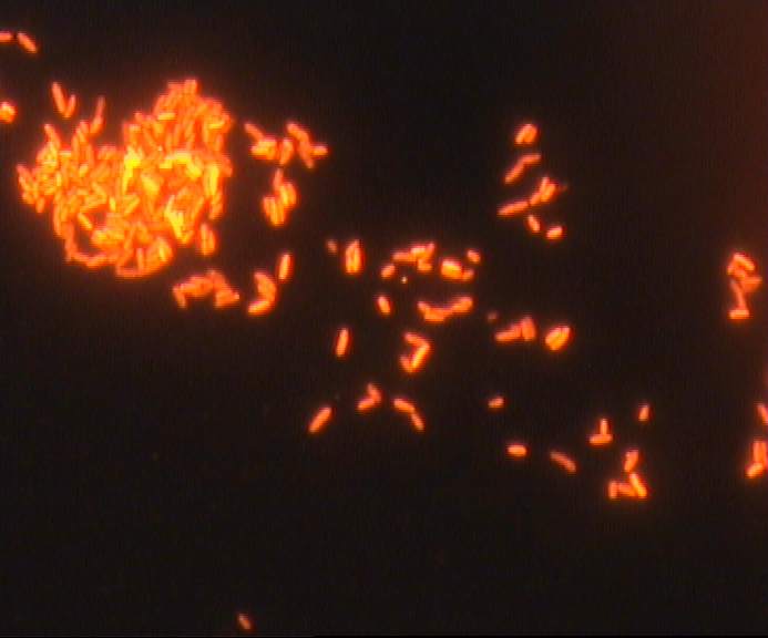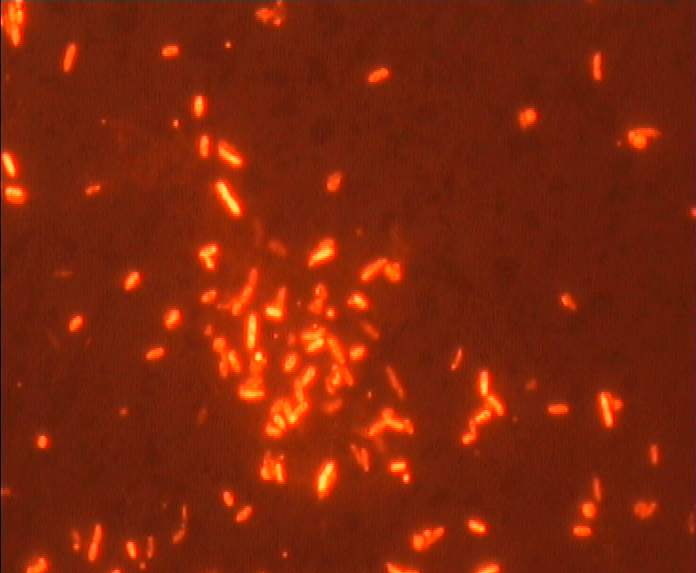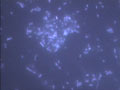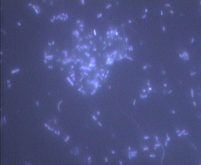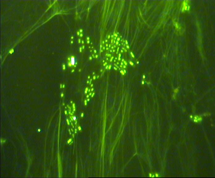 Fluoreszenz-Aufnahme Bakterien auf Metallsubstrat |